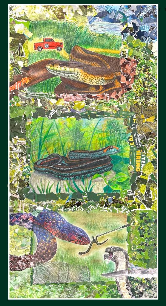 Groups of two or more K-12 youth submitted muti-media artwork that features at least one US, US Territory, or US Territorial Waters native or migratory plant or animal species. The following illustration is by Ryan and Claire, 4th and 8th grade students respectively. You can see more examples at the online collaborative art gallery.
